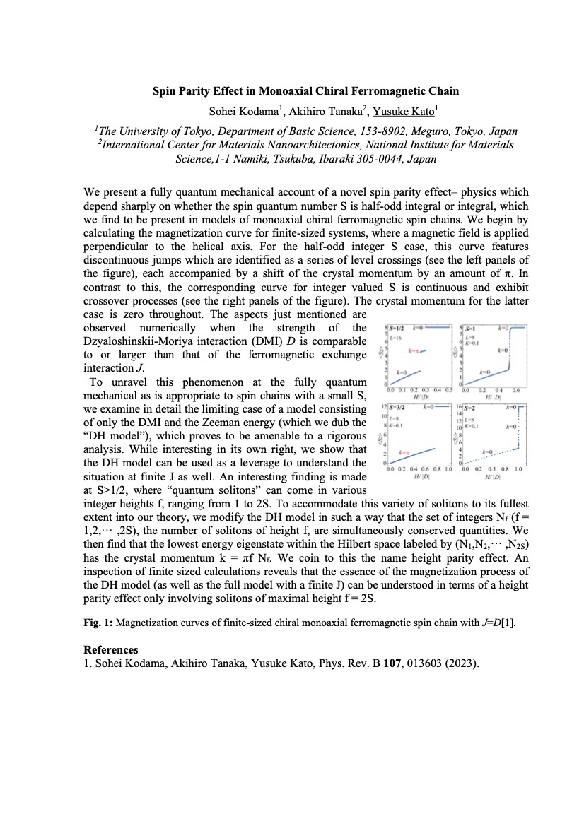 Spin Parity Effect in Monoaxial Chiral Ferromagnetic Chain, Prof. Yusuke Kato [加藤雄介], The University of Tokyo